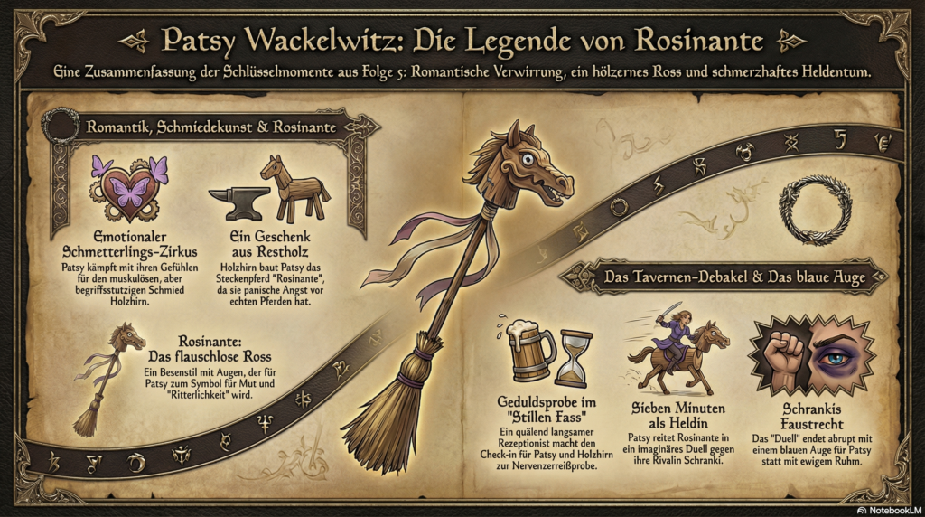 Rosinante ist Patsys nächster großer Schritt: weniger „Was passiert als Nächstes?“ und mehr „Wer will ich eigentlich sein?“. Statt Epik um jeden Preis geht’s um Tempo, Ton und Taktgefühl – um Patsys typisch schrägen Rhythmus zwischen „ja, nein, vielleicht… genau“. Du bekommst eine energiegeladene Folge, die Komik, Herz und Selbstironie bündelt, ohne dir die Schlüsselmomente vorwegzunehmen.