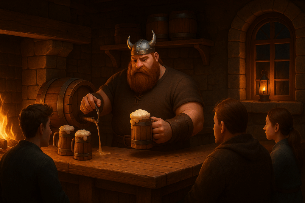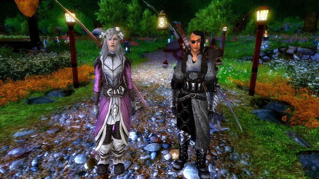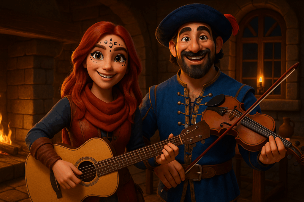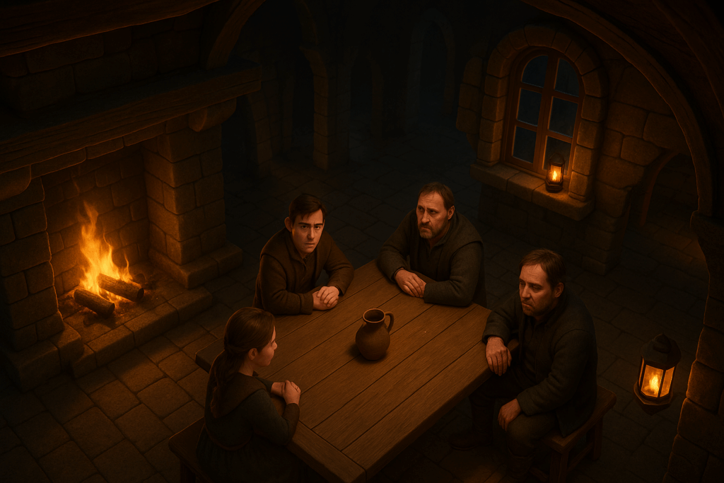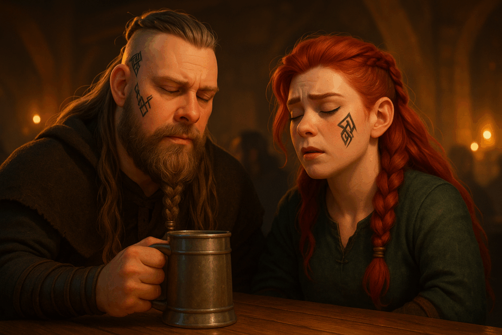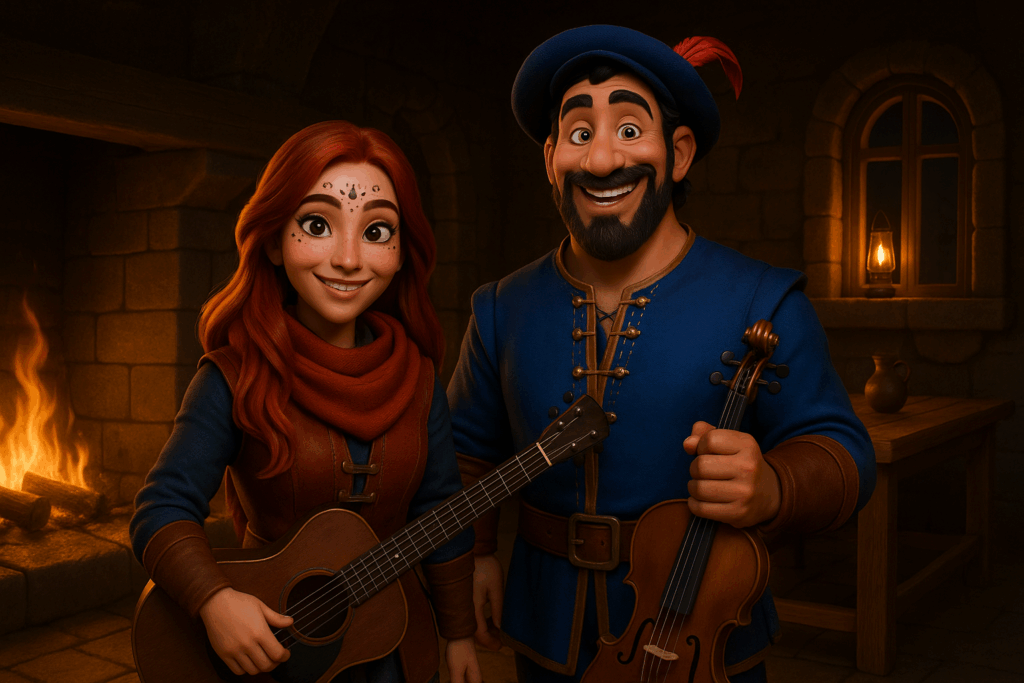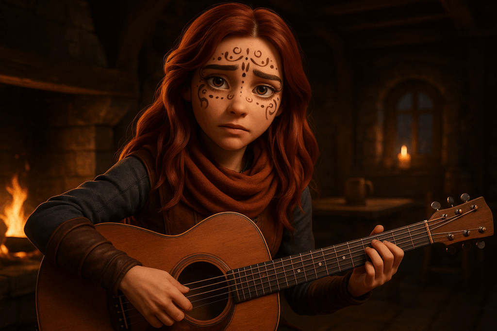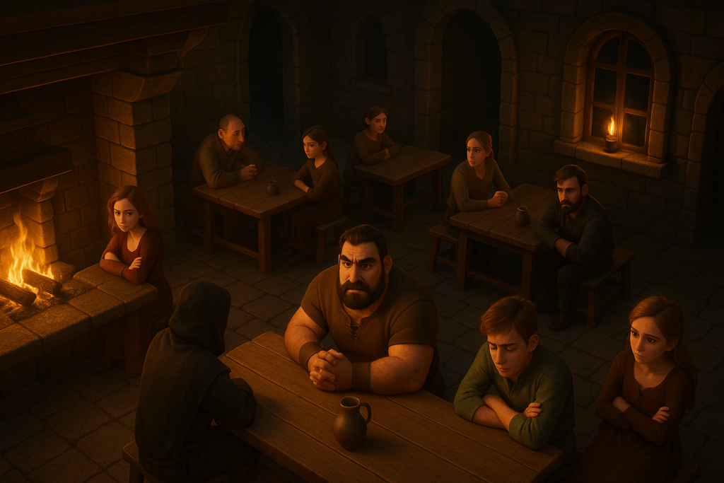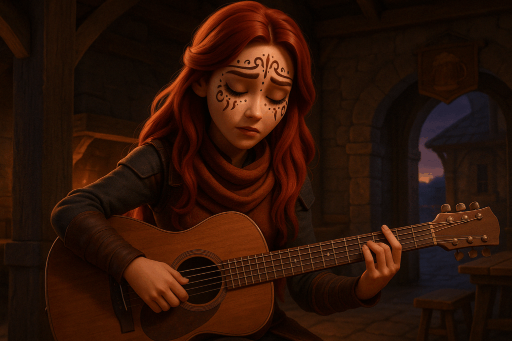 Mein Setting: Eine Taverne im mittelalterlichen Stil. Dazu habe ich einige Charaktere aus meiner eigenen Fan-Serie hinzugefügt – unter anderem Patsy, die Oma, sowie den Barden aus The Elder Scrolls Online. Aus Herr der Ringe Online habe ich Skaldiv und Alenwen eingebaut. Alle anderen Charaktere wurden frei erstellt – bis auf zwei, aber auf die gehe ich nicht weiter ein. Nö und nö. 🙂