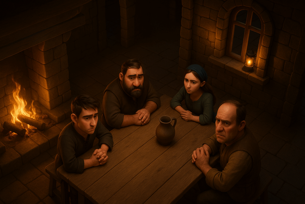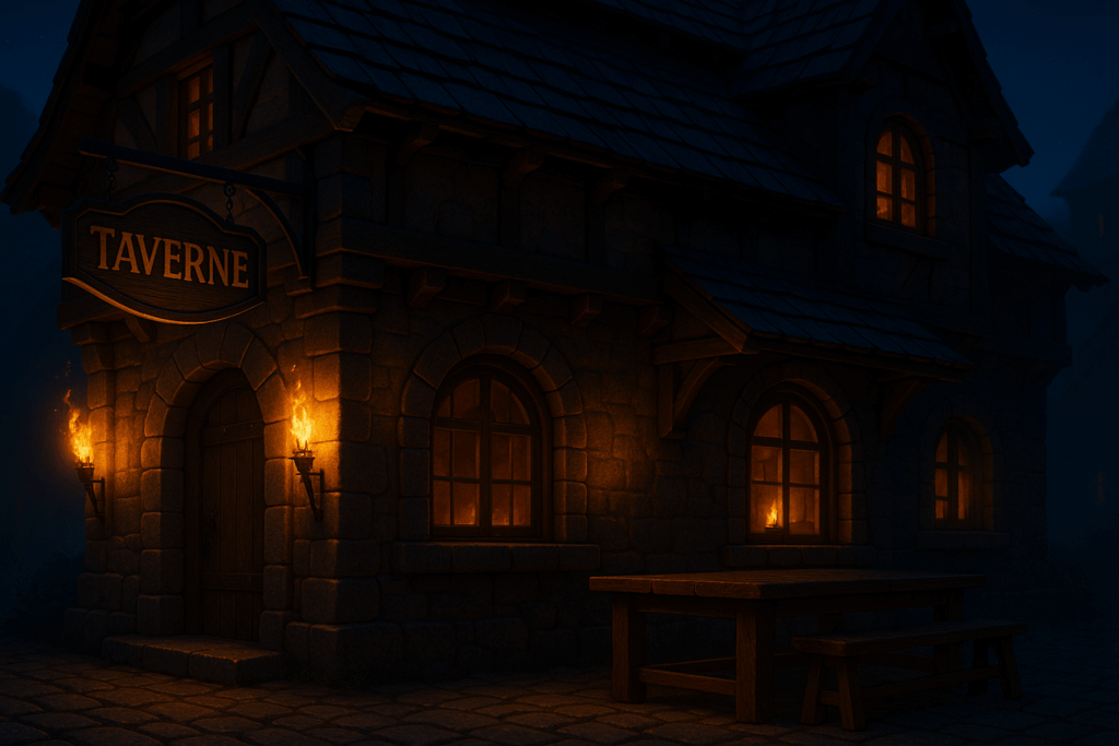 Zuerst habe ich alle Bilder vorbereitet. Ich habe vorhandene Screenshots genommen und sie mithilfe von OpenAI Sora in einen Pixa-Art-Stil umwandeln lassen. Nach einigen Versuchen hatte ich die nötigen Ausgangsbilder. Die Taverne und das drumherum ließ ich frei Schnauze durch ein Prompt generieren: „Ich brauche eine Taverne im Mittelalterstil in Pixa-Fantasy-Optik.“